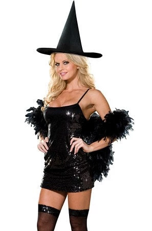 Cast a seductive spell with this playful witch set. The sexy set includes a tall black witch hat and matching feather boa. The black hat and boa are the perfect finishing touch for sexy witch costumes. **Sizing Note – One Size should work for you, if you normally wear XS, SM, MED, and sometimes LG.