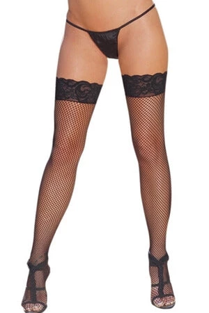 Fishnet thigh high with lace top. **Sizing Note – One Size should work for you, if you normally wear XS, SM, MED, and sometimes LG.