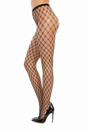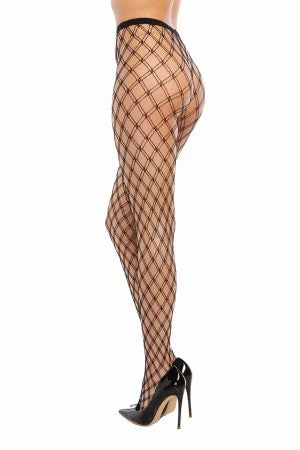 Double knitted fence net pantyhose. Thong panty not included.