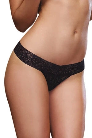 Stretch lace thong with stretch lace waistband **Sizing Note – One Size should work for you, if you normally wear XS, SM, MED, and sometimes LG.
