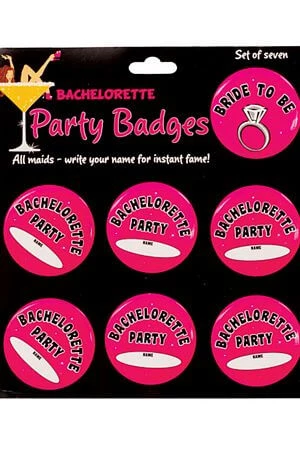 Take the bachelorette party to the next level with these badges from OMG International. They’ll let everyone know that you’re with the bachelorette party. Comes in pks of 12.