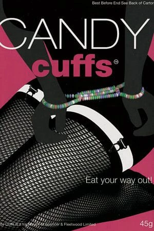The sweetest cuffs! The Candy Cuffs are made with tasty candy. The cuffs slip over most wrist sizes and allow for a tasty restraint. Eat your way out of submission!