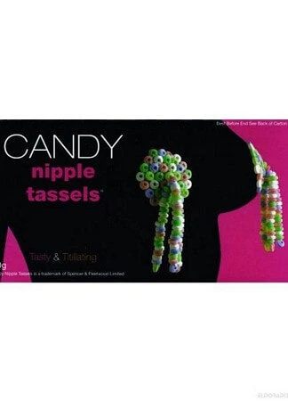 Use these Candy Nipple Tassels to give your lover the sweetest strip tease ever tasted! Each colorful nipple cover measures 2.75″ in diameter and the tassels are 5″ long.