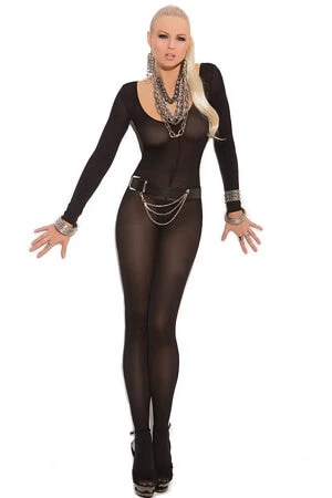 You’ll be sleek and sexy in this sheer, opaque body stocking featuring long sleeves and an open crotch. **Sizing Note – One Size should work for you, if you normally wear XS, SM, MED, and sometimes LG.