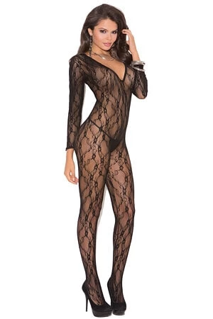For your sexy and romantic sides, we have this floral lace deep V body stocking. Sure to please! Features an open crotch. **Sizing Note – One Size should work for you, if you normally wear XS, SM, MED, and sometimes LG.