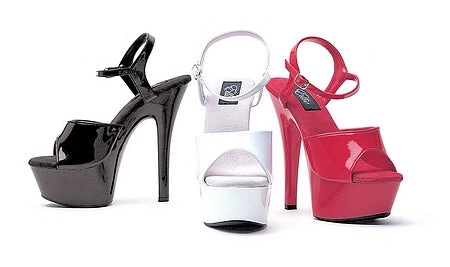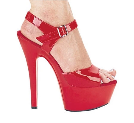 Strut your stuff in these red hot heels. The red patent peek toe sandals features 6″ stiletto heels, a 2″ platform on the front, and an adjustable ankle strap with side buckle, These stunning sandals are the ideal heel to pair with sexy costumes.