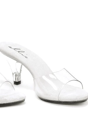 These sexy clear mule slides feature a 3 inch heel.