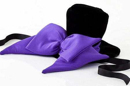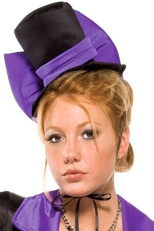 Top off your sexy costume with a dramatic black hat. This comfortable hat is adorned with a large purple bow in the back, and a matching sash around the crown. It’s a perfect addition to any scary costume.