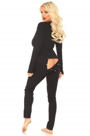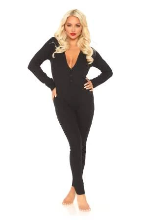 Cozy brushed rib long johns with cheeky snap closure back flap.