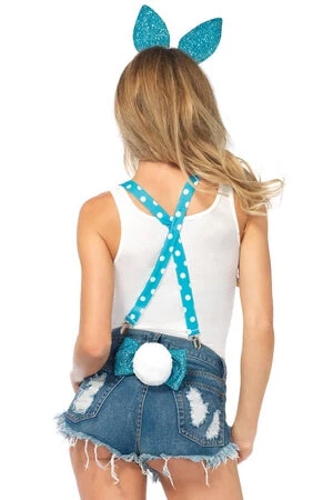 Blue Sparkle Bunny Kit includes clip on suspenders, glitter bow tie tail, and matching sequin ear headband.