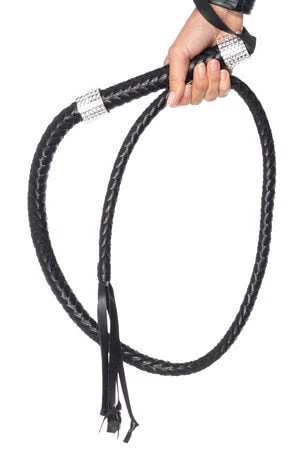54 inch black braided faux leather whip with cat tail end goes great with super hero look!