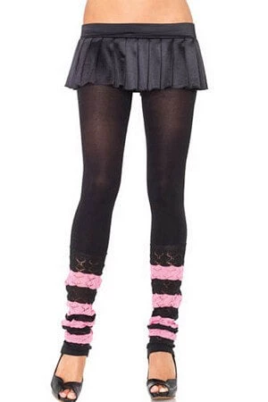 Opaque footless tights which feature a crocheted leg warmer bottom. **Sizing Note – One Size should work for you, if you normally wear XS, SM, MED, and sometimes LG.