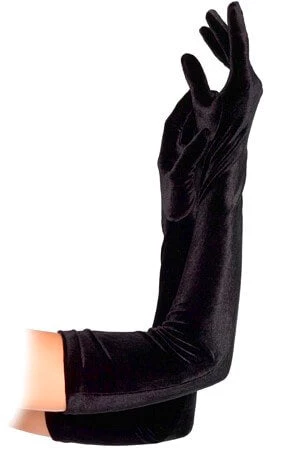 Add a touch of sensual velvet to your fancy costumes, formal dresses, and lingerie looks with these beautiful gloves. These long black velvet opera length gloves extend way past the elbows for an ultra dramatic look.