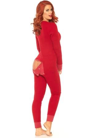 Cozy brushed rib long johns with cheeky snap closure back flap.
