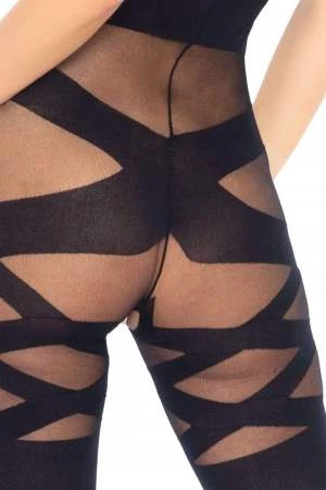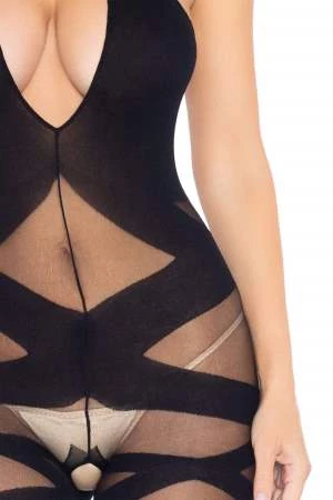 Opaque and sheer illusion bodystocking with keyhole halter detail.