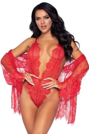 Leg Avenue Trending Sellers Red Lace Teddy And Robe Set