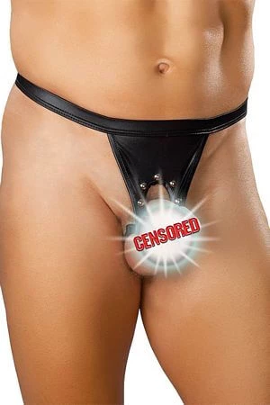Sleek and seductive apollo thong studded leather look molds to the body like a second skin.