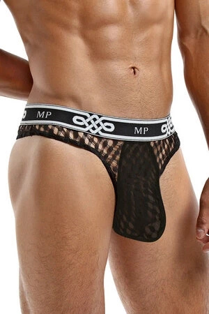Thong with low cut waist and lined pouch and new plush MP logo’d waistband.