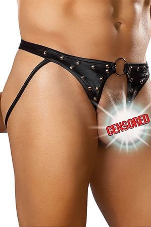 Sleek and seductive cyclops jock studded leather look molds to the body like a second skin.