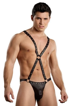 Full Body Strapped thong underwear in fetish style cire with studs.