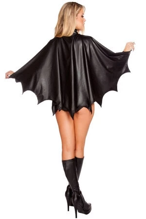 Sexy Night Vigilante features a cape, belt, and romper with bat symbol detail.