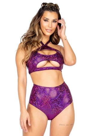 Dance the night away in these high waisted glittery fabric rave shorts. A perfect complement to Roma Costume’s 3839 Keyhole Cropped Top (sold separately).