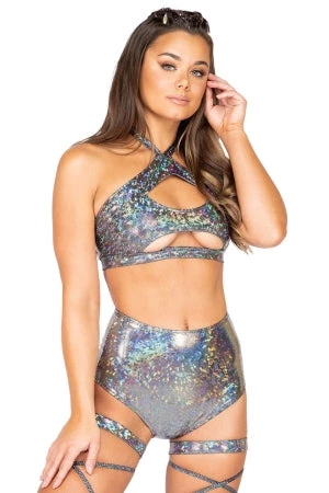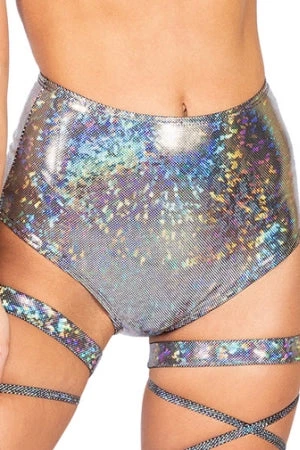 Dance the night away in these high waisted glittery fabric rave shorts. A perfect complement to Roma Costume’s 3839 Keyhole Cropped Top (sold separately).