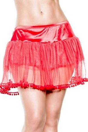 Add an extra element of fun to your sexy costumes with this playful pompom petticoat. This multi layer petticoat features a low waist and a sheer panel of fabric with pompom trim at the hem as a festive touch.