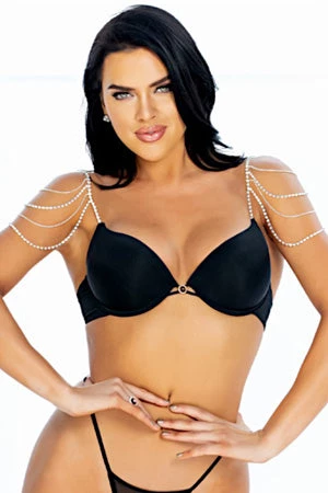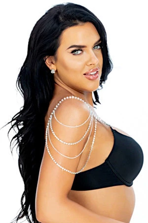 Add some glam to your look with these shoulder straps featuring rhinestone studded chain with draping shoulder details. Can be connected to your strapless bra. Bra and panty not included.