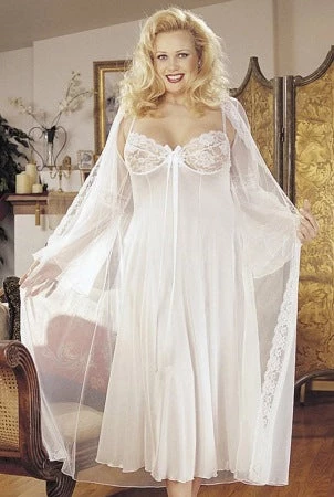 Shirley Of Hollywood White Plus Long Gown Pegnoir Set 5X And Up
