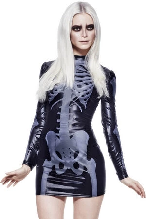Rattle some bones in this sexy long sleeved mini dress with skeleton print!