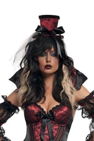 Vampire Hat features mini victorian top hat with lace and bow detail.