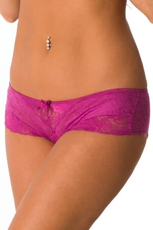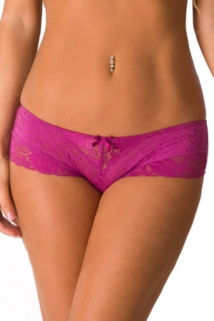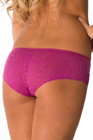 Plum leopard burnout boyshort with lace trim and center front bow.