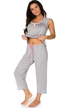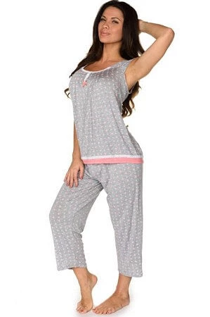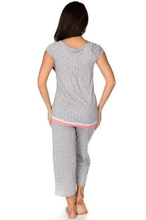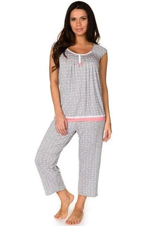 No need to count sheep in this irresistibly comfortable sleepwear set! Set includes sleepshirt with cap sleeves, square neckline with lace trip, buttons, bow and pleating detailing, lace trim with peekaboo trim compliment this top. Matching capris with elastic waistband and tie front closure complete this look. 95% Rayon, 5% Spandex