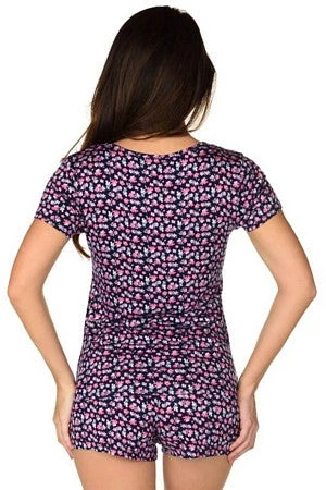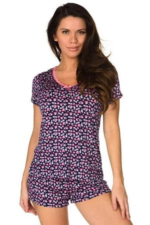 This set will have you have begging for breakfast in bed! Sleepshirt has a laced v-neck, satin bow, and ruching. Sleep shorts feature an elastic waistband with lace detailing, satin bow, and faux pocket detailing with lace and rhinestones. 95% Rayon, 5% Spandex