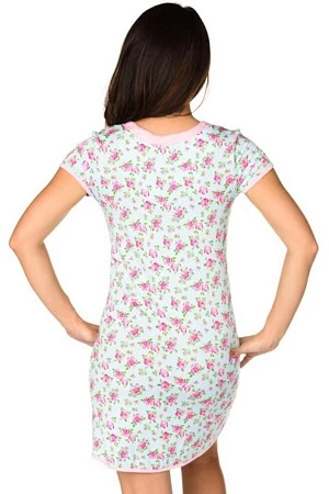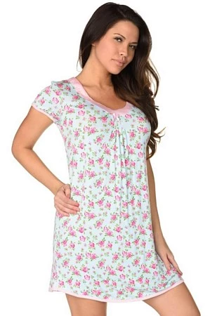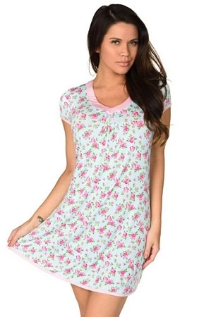 Stay in bed all day in this cute and cozy sleep chemise. Chemise has light pink scoop neck with pleating and bow detail. Cap sleeves and hemline have pink trim to compliment the floral print throughout. 95% Rayon, 5% Spandex