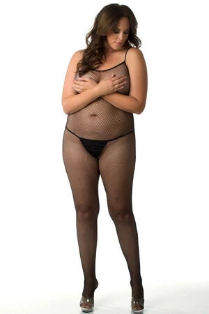 Va va voom! Although it is called the Plus-Size Small Talk Crotchless Bodystocking, rest assured, when you wear this there will be little to no small talk going on! When you slip into this bodystocking, you will not be sending any mixed signals. It speaks loud and clear. This crotchless fishnet bodystocking conforms to the body like second skin, yet features elastic shoulder straps for added comfort. There are times when you want to wear lingerie that leaves a little to the imagination and then there are times when you want to be bold and stunning. If you are going for the latter, this sultry number was definitely made for you. We love how the crisscross back detail adds a corset-like flair to the design, further adding to the seductive appeal of the design. When you want your hourglass curves to do all the talking, slip into this bodystocking. Wear it with a pair of black thongs or panties, or completely alone.