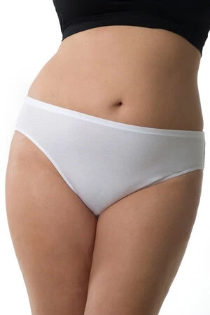 White high cut brief with elastic waist. 95% Cotton, 5% Spandex.
