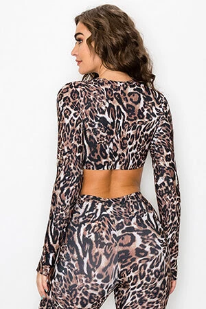 A cropped long sleeve to top off any look. Versatile style, easy to pair with your favorite high rise bottoms! Stretchy and soft fabric and leopard print all over.
