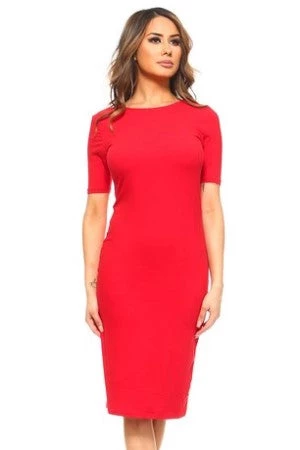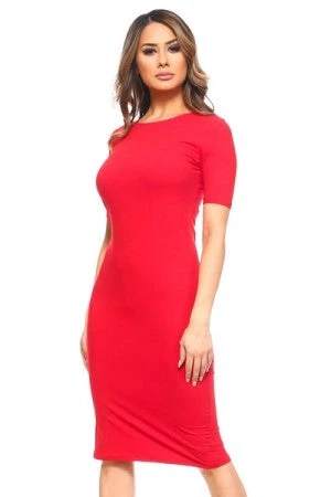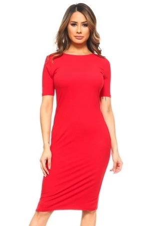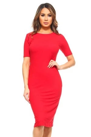 Simply stated, our short sleeve crew neck midi body-con dress is a stunning addition to your daytime collection.